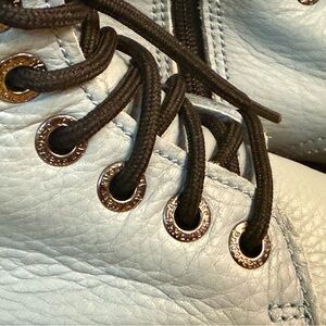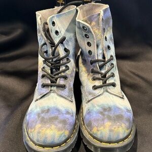 Doc Marten Jadon Platform light blue leather boots with black laces. Durable and trendy design. Super soft leather with zipper on side. Nice and comfy!