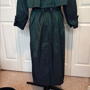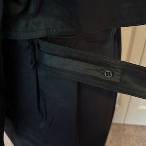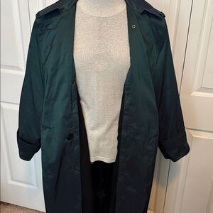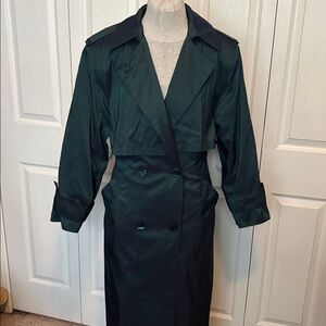 Chase the trench trend with this super long trench. It is 50” long from top to bottom. It’s so long it wouldn’t fit into one picture. This is not fast-fashion. So many high quality details: working pockets, a warm knee-length button-in wool-blend liner with full satin sleeves, and extra buttons in the hem. It even has a hidden button strap that attaches to a secret belt loop, assuring that you never lose the belt! Has been cleaned.