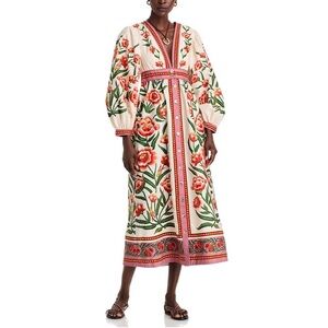 FARM RIO Ainika Delicate Puff Sleeve Floral Bird Maxi Dress Size XS NWT (FLAWED)