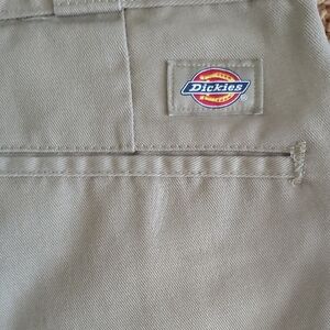 Classic khaki chinos by Dickies. Durable and comfortable. Ideal for casual wear. 32x32. worn and loved infinitely by my son....still got some good use in them.