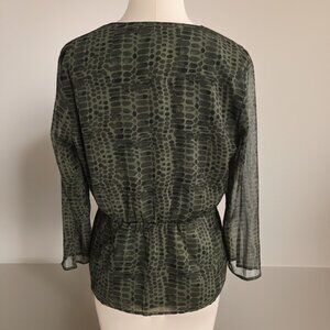 Banana Republic Women Blouse V Neck Long Sleeve Geometric Polyester Green Size M
