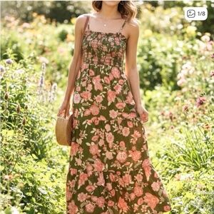 Dance barefoot through midsummer rites in this pre-owned Patrons Of Peace floral boho maxi — vibrant multicolour blooms on lightweight fabric, fully cotton-lined, adjustable spaghetti straps, smocked back for easy fit and breathability. Perfect for garden rituals, festivals, or everyday earth-witch elegance.