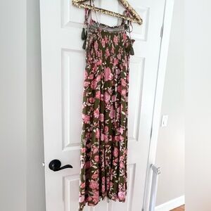 NWT Patrons of Peace Boho Floral Maxi Crossover Dress whimsigoth fairycore