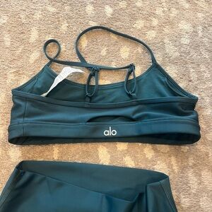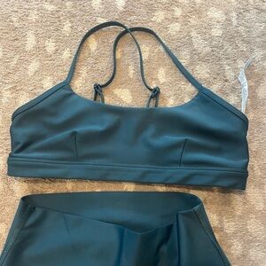 Like new - bra and leggings are both size small. I wore one time but they were a little too small and need to get bigger sizes. Color is clover green I think?