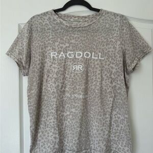 Stylish Ragdoll Los Angeles t-shirt with a leopard print design. Size M. Features the on-brand used look on sleeves and neckline. 100% cotton