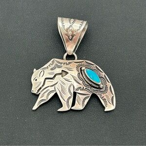 7.9g 925 Jereme Delgarito Native American bear pendant with turquoise stone in good pre-owned condition.