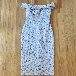 Chic strapless dress with delicate floral design. Ideal for elegant events.