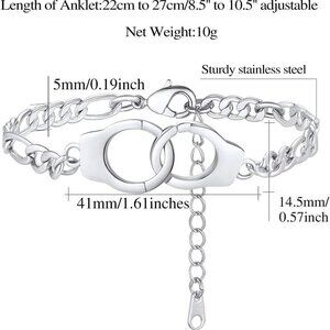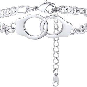 Features: Eye-catching handcuff charm combined with a delicate Figaro chain, adjustable length for a perfect fit. Made with durable, skin-friendly stainless steel that shines beautifully and resists tarnish. Great for making a statement at parties, beach days, or everyday wear.