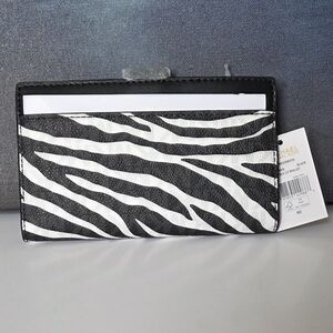 Stylish Michael Kors wallet featuring a bold black and white zebra print. Perfect for adding a touch of elegance to your accessories collection. NWT Retail $198.00 View pics please