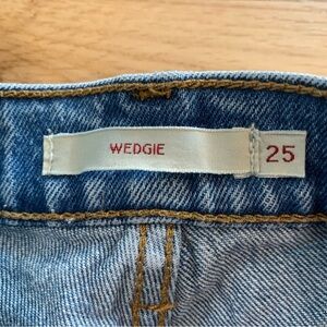 Women’s Levi’s Button Fly Ribcage Straight Leg Medium Wash Distressed Jeans 25