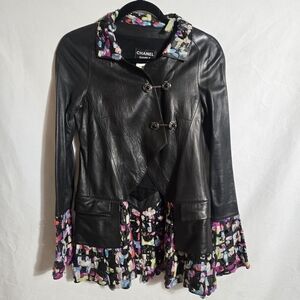 Item Type: Women's lambskin leather and silk blend jacket, runway sample