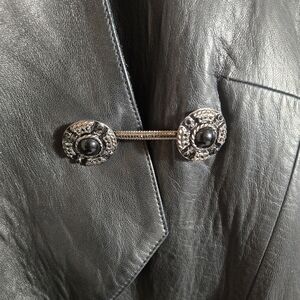 Condition: Good pre-loved condition — leather shows light creasing and surface marks consistent with age; no major stains or tears; buttons and lining intact