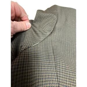 BACK SHOULDER SEAM IS NOT RIPPED THE STITCHING IS SLIGHTLY OFF BUT IS HIDDEN WELL. Elevate your wardrobe with this stylish "Chaps" houndstooth blazer for men. The classic brown and black pattern offers a sophisticated look, perfect for the office, dinner events, or making a statement in the legal profession.