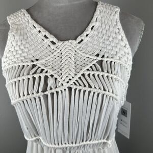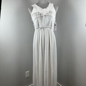 NWT Cupshe Knit Semi Sheer Cover-Up Maxi Dress Macrame White Vacation Beach