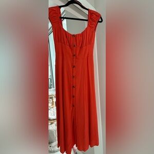 Bright orange bikini with textured design. Stylish and comfortable for beach days. Top is size L with underwire and adjustable straps. bottom is size M with ruched detail and tummy control. Depending on where you hold weight, a Medium or Large can fit this. Worn once