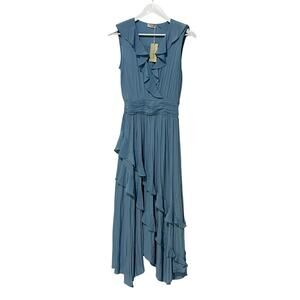 RAMY BROOK WOMENS SIZE SMALL HADLEE RUFFLE MIDI OCCASION DRESS BLUE NEW