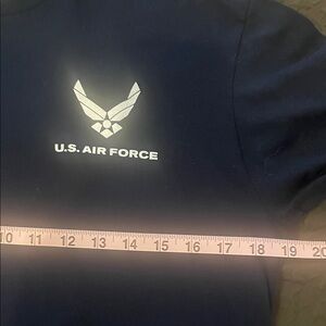Show your support with this U.S. Air Force navy blue t-shirt. Perfect for casual wear, this shirt offers comfort and style. 100% Pre-shrunk cotton. Fits like a fitted T-shirt. Measurements in pictures. Like new condition.