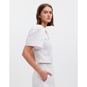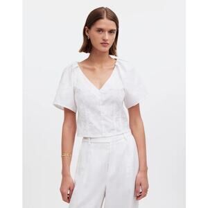 Madewell White McCoy Darted V-Neck Top in Floral Size 10
