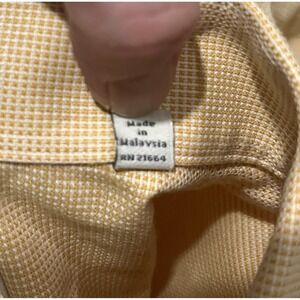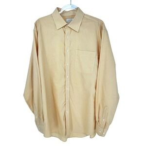 ENRO Mens Non-Iron Long Sleeve Dress Shirt L Yellow and White Check 100% Cotton