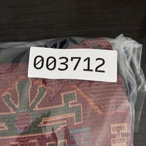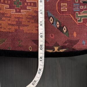 Color: Rusty red base with multicolor motifs and contrast black trim.