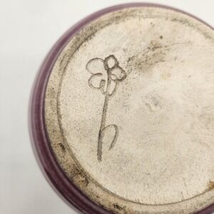 The perfect gift for the person in your life who loves romance and candles! Large and small heart cutouts run perfectly spaced around this beautifully-made holder. The glaze is semi-gloss with horizontal striping that was characteristic of studio pottery from the late 20th to early 21st century. The piece is signed with what looks to be a stylized daisy but I was unable to pinpoint the artist.