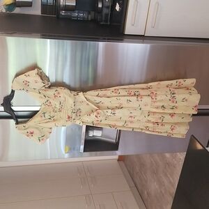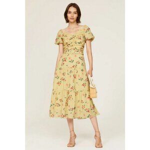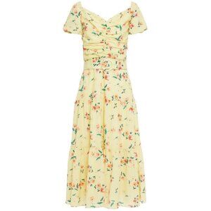 💕PALOMA BLUE💕 Evie Gathered Floral-Print Crepe Midi Dress Yellow Medium M NWOT
