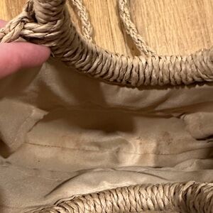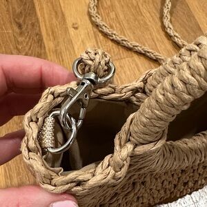 Shein | Elevate your style with this chic tan woven handbag. Perfect for any occasion, this bag combines fashion and functionality. Straps do clip off as pictured. Makeup marks in bottom of purse (pictured).