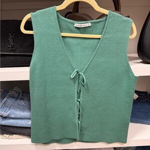 Stylish teal tank with tie-front detail. Perfect for any occasion.