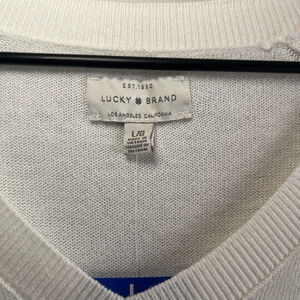 Lucky Brand Women's V-Neck Sweater Long Sleeves Side Slits White Size L
