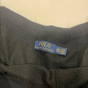Polo Comfortable black zip-up hoodie with matching sweatpants. Features a small red logo on the chest.