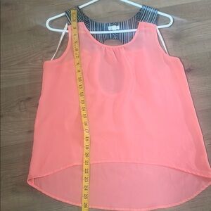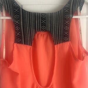 EM Coral Orange High-Low Tank Top | Striped Aztec Texture Straps | Size M