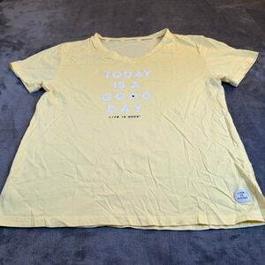 Life is Good Yellow V Neck T Shirt Today is a Good Day Graphic Womens Medium