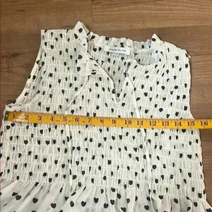 Add a sweet touch to your wardrobe with this airy babydoll-style top. It features a delicate black heart print over a sheer cream base, perfect for layering over a camisole for a soft, feminine look.
