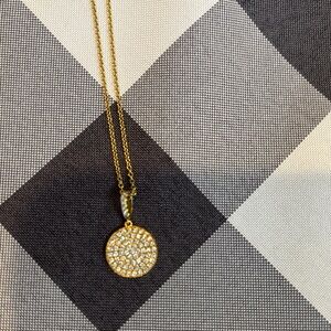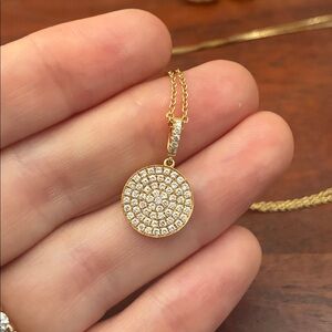 Beautiful pave diamond and 18k gold necklace. Please note the clasp is 14k Gold Filled.