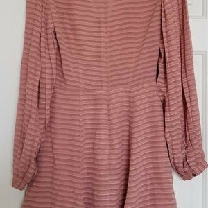Keepsake "Waterfall" striped dress with pleated, blouson sleeves.