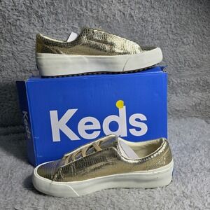 Keds Remi Leather Gold Metallic Snake Embossed Platform Sneakers Womens 10 NEW