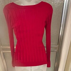 This pretty and sexy red long-sleeve ribbed scoop-neck sweater would work with many outfits.