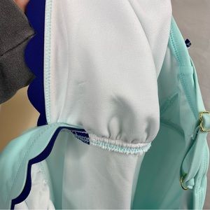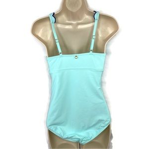 Crown & Ivy Double Scallop One Piece Swimsuit Aqua and Navy