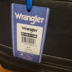Sleek black design with durable straps. Front zipper for easy access. Perfect for everyday use. Received for Christmas, and I never used it. I also have the wrangler purse bag for it, too. It comes from a smoke-free home.