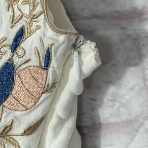 This is a charming Lulus dress featuring intricate floral embroidery on the bodice and a flowing skirt. The spaghetti straps and lightweight fabric make it perfect for warm weather occasions.