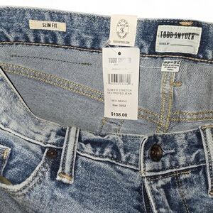 Designer Todd Snyder slim fit jeans in size 33x32. These jeans have a great wash. Nice stretch, good weight to the denim, brand new! Retail $158