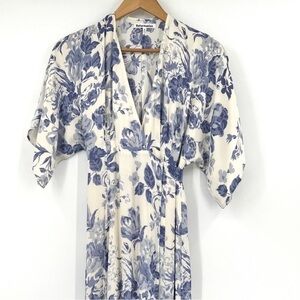Reformation Winslow Lucerne Floral Blue White Rose Wrap Dress slit tie waist NWT