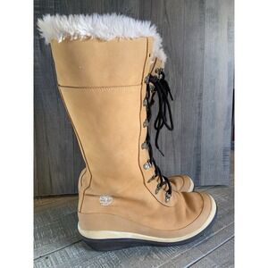 Timberland Tall Lace Up Boots Womens 8M Wheat Brown Faux Fur Winter Warm