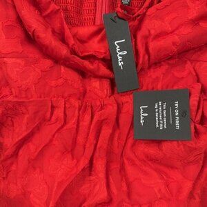 NWT Lulus Grace and Beauty Red Burnout Floral Print Tiered Dress