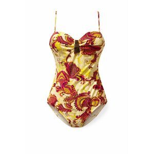 Size 14 with built-in breast padding for support and coverage.