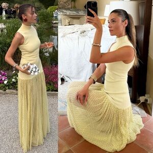 HELSA Costanza Gown Sheer Polka Dot Skirt Butter Yellow NEW with tag