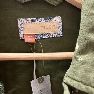 Pilcro Anthropologie Cropped Utility Jacket XSP Moss Splatter Military Artsy Raw