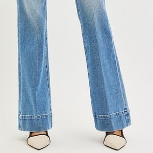 Risen Mid-Rise Tummy Control Slim Fit Retro 70s Flare Leg Jeans Denim Pants