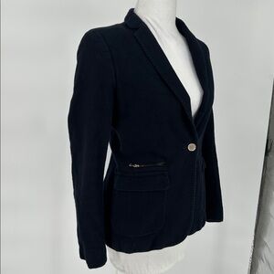 Massimo Dutti Women's Navy Blue Blazer Classic Tailored Wool-Blend Jacket Size 6