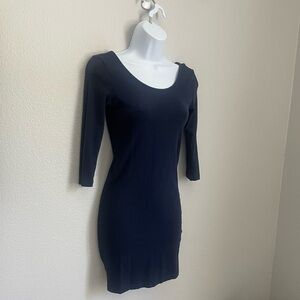 Forever 21 Navy Blue Bodycon Mini Dress Scoop 3/4 Sleeve Stretchy Cotton Blend